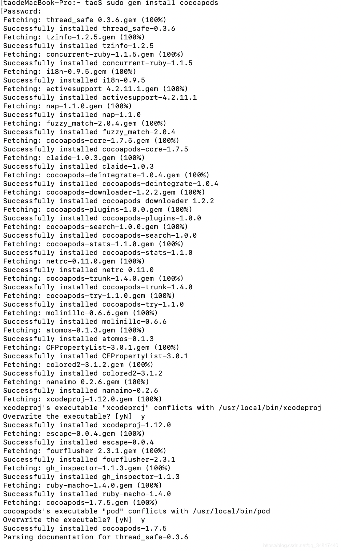 taodeMacBook-Pro:~ tao$ sudo gem install cocoapods