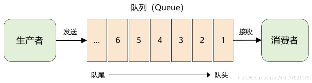 - 消息的队列模型:队列这种先进先出的数据结构作为存放消息的容器(消息进出按照既定的顺序),它允许多个生产者往同一个队列发送消息(也即从队尾入队),但如果有多个消费者,某个消息只能被其中一个消费者接收(也即从队头出队),多个消费者之间是相互竞争关系。队列模型的应用比较广泛,比如任务阻塞队列、数据缓冲队列、线程安全的并发队列、线程或进程间通信的消息队列等;