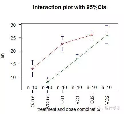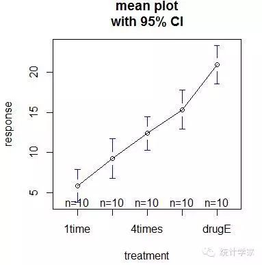 #绘制各组均值及其置信区间的图形