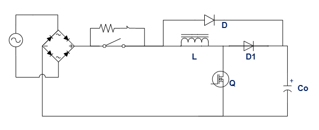 如图,为Boost升压PFC常用实用拓扑(增加预充电路和旁路二极管)
