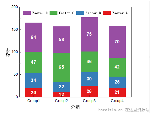 如何在Origin中绘制堆积柱状图,如下,可以直观展现各个指标之间数值(或比例):
