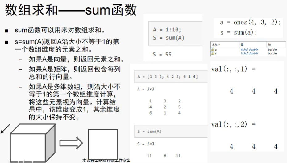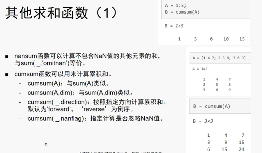 基本线性代数 [R jb]=rref(A)将A化为行最简型矩阵.R为所得行最简型矩阵,jb是一个向量显示每行首非0元所在列号. inv(A)求方阵A的逆,注意结果可能出现错误.当结果中出现Inf和Na ...