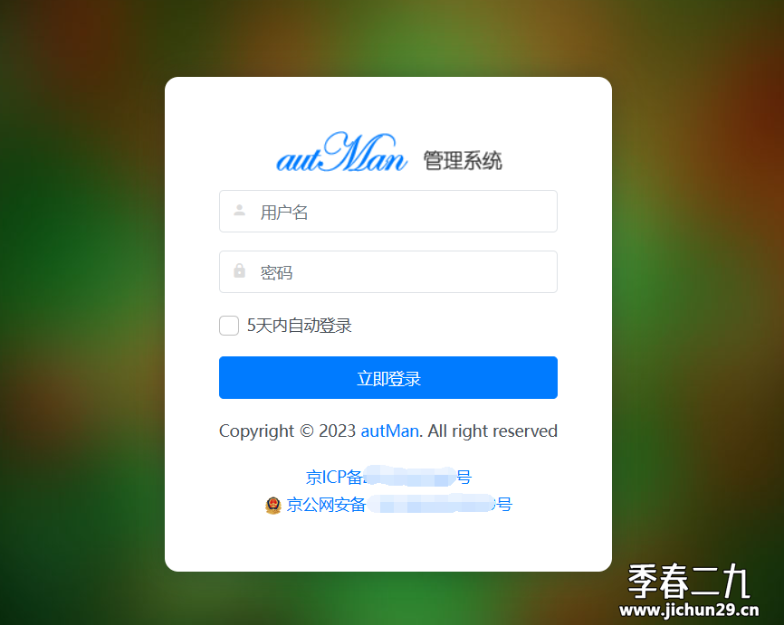 2、重启autMan两次即可访问autMan后台进行页面登陆。