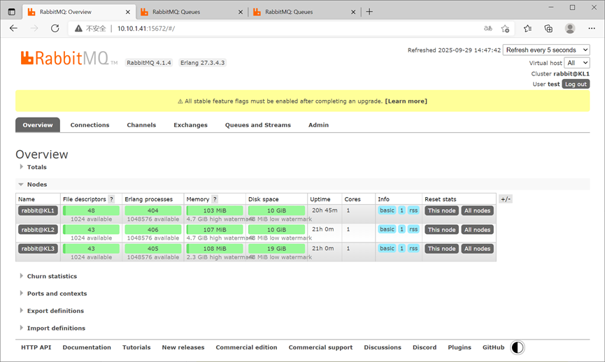 2025-09-29 15:03:54.352322+08:00 [info] <0.491.0> node rabbit@KL1 up
