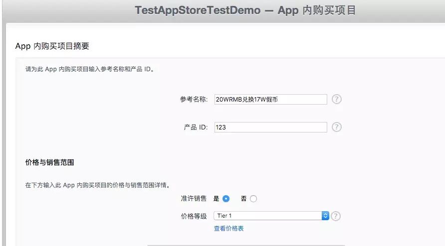 这里有几个选项,需要填写商品名称,产品ID以及价格等级,简单说明一下