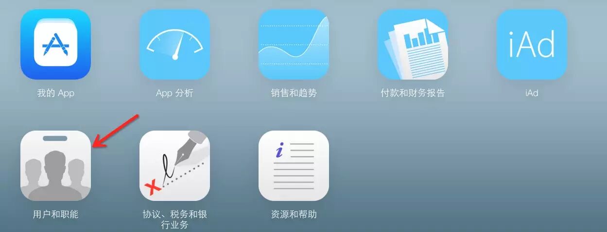 首先我们回到iTunes Connect(https://itunesconnect.apple.com/WebObjects/iTunesConnect.woa/ra/ng/)中,在这里我们选择用户和职能。