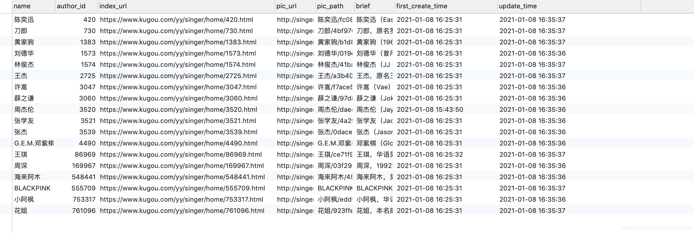 - 使用scrapy 爬取酷狗音乐歌手及歌曲名并存入mongodb中