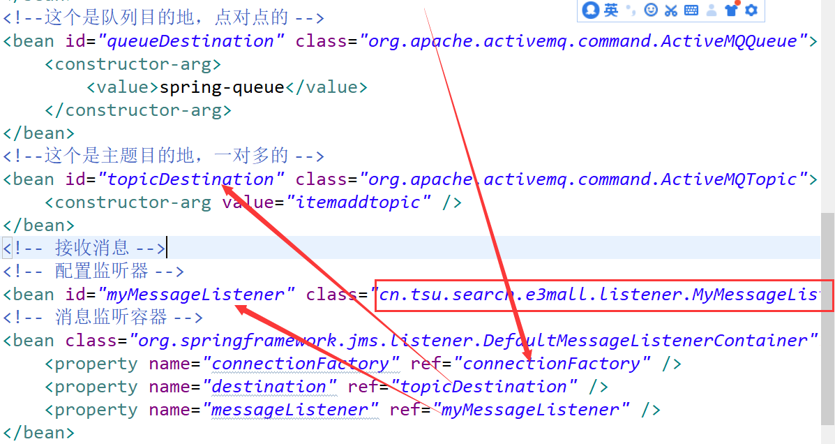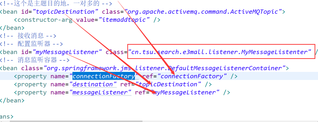 <bean id="myMessageListener" class="cn.e3mall.search.listener.MyMessageListener" />