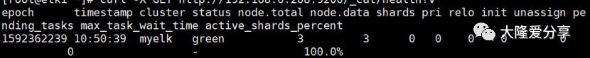 curl -X GET http://192.168.0.10:9200/_cat/health?v