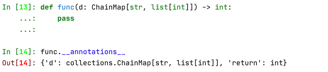 Python 3.9 为内置的以及标准库中的集合类型提供了用于类型提示中的泛型的支持。如: