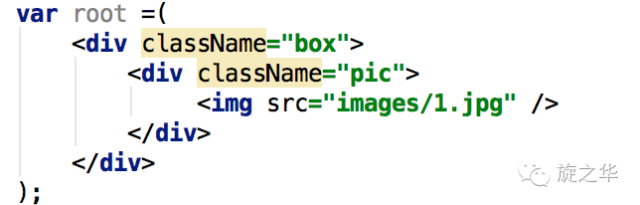 但这样的代码可读性并不好,于是React发明了JSX,利用我们熟悉的HTML语法来创建虚拟DOM: