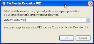 點左邊程式 HelloWorldServlet.java,按右鍵 Run File,會跳出框框如下圖