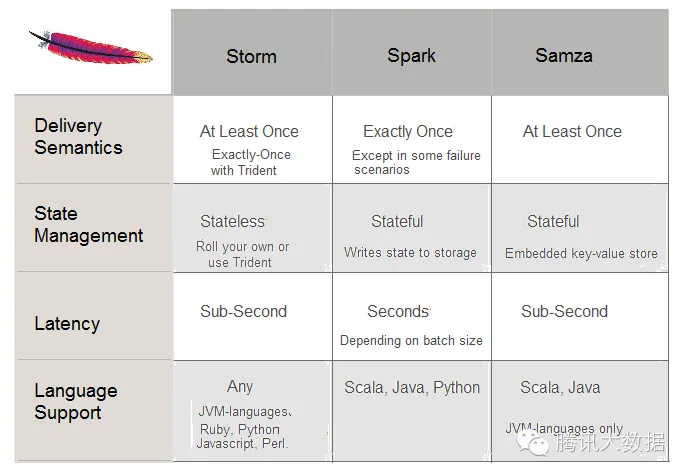 LinkedIn主推的流式计算框架。与其他类似的Spark,Storm做了几个比较。跟Kafka集成良好,作为主要的存储节点和中介。