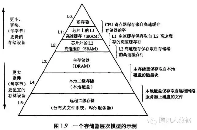 我们的目标是做一个可靠的,支持大规模扩展和容易维护的系统。计算机里面有个locality(局部性定律),如图所示。从下到上访问速度越来越快,但存储代价更大。