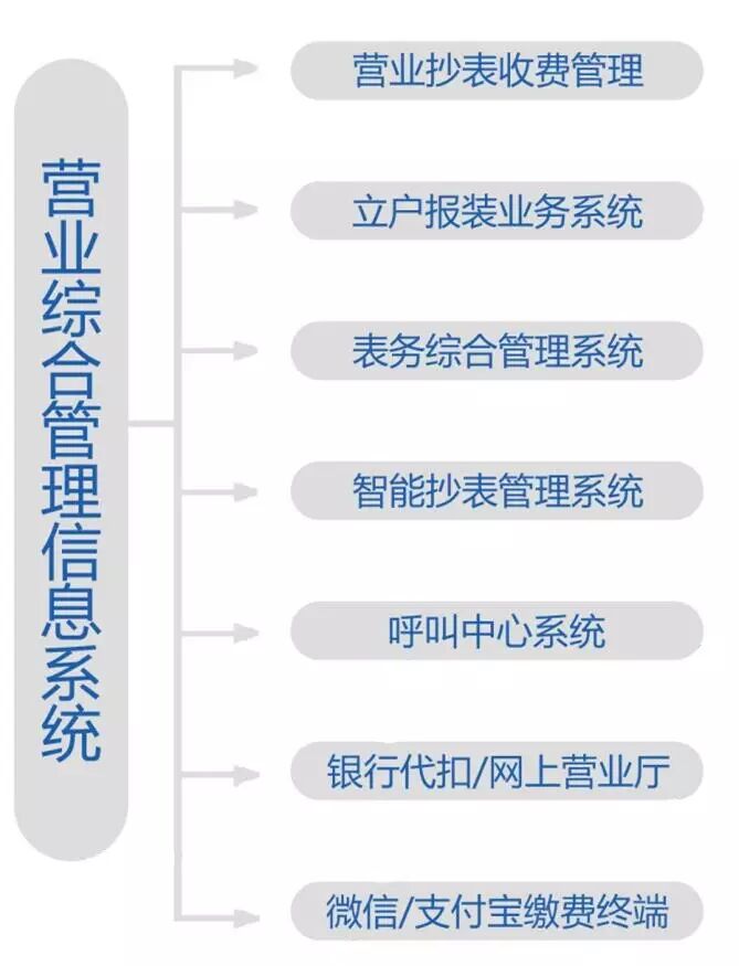 营业收费管理信息系统(自主知识产权)是以客户档案、抄表、收费、换表业务为基础,协同绩效考核、表务管理、票据管理、微信等深度应用,同时能够整合对接行政办公、ERP等供水行业其它信息平台的营业收费管理系统,为供水行业前端使用这提供快捷人性化的操作体验,为高层决策者提供精确的数据支持,全方位提高使用单位信息化层次,提升企业形象。