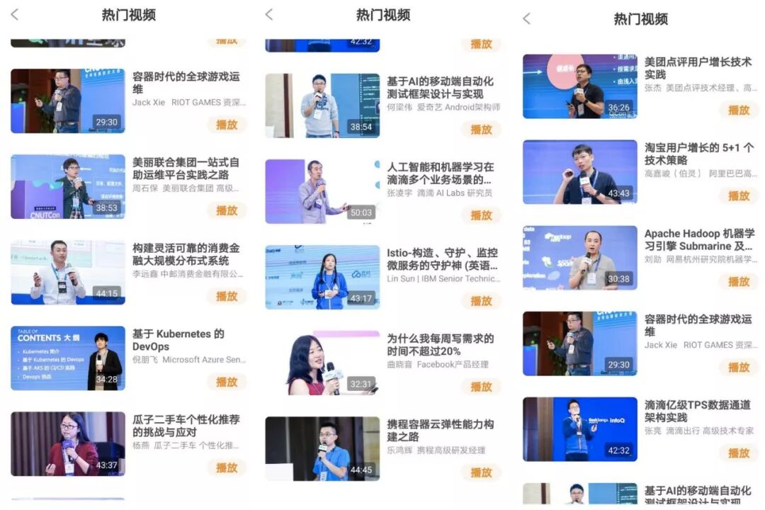 视频的来源有 Qcon 全球软件开发大会、ArchSummit 全球架构师峰会、GMTC 全球大前端会议、BCCon 全球区块链生态技术大会、GTLC 全球技术领导力峰会、AlCon 全球人工智能与机器学习技术大会和 CNUTCon 全球运维技术大会等。