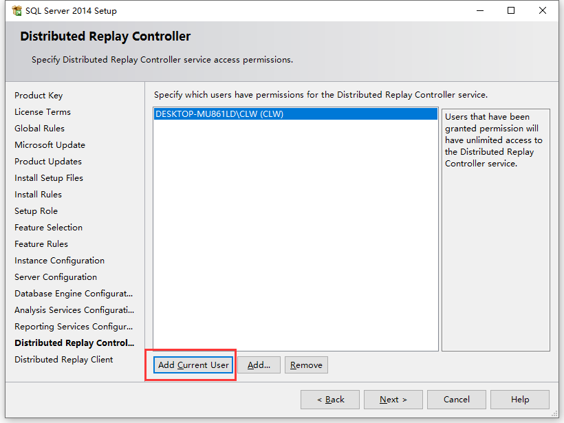 14. 指定Distributed Replay的访问权限,添加当前用户。