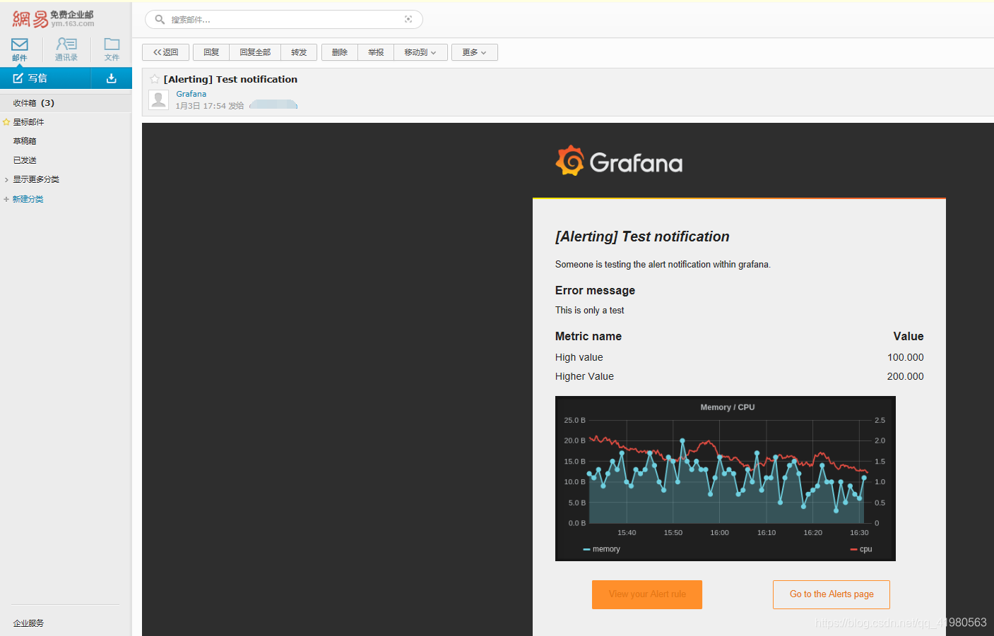 - 执行docker-compose up -d重启grafana再发送测试邮件访问里面的URL就能正常跳转到grafana了