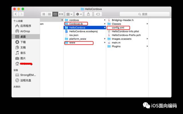 下面说下怎样将做 混合开发 以iOS为例,在原有原生的基础上,怎样将你的ionic代码放到你的项目中,将圈住的文件放到iOS项目中: