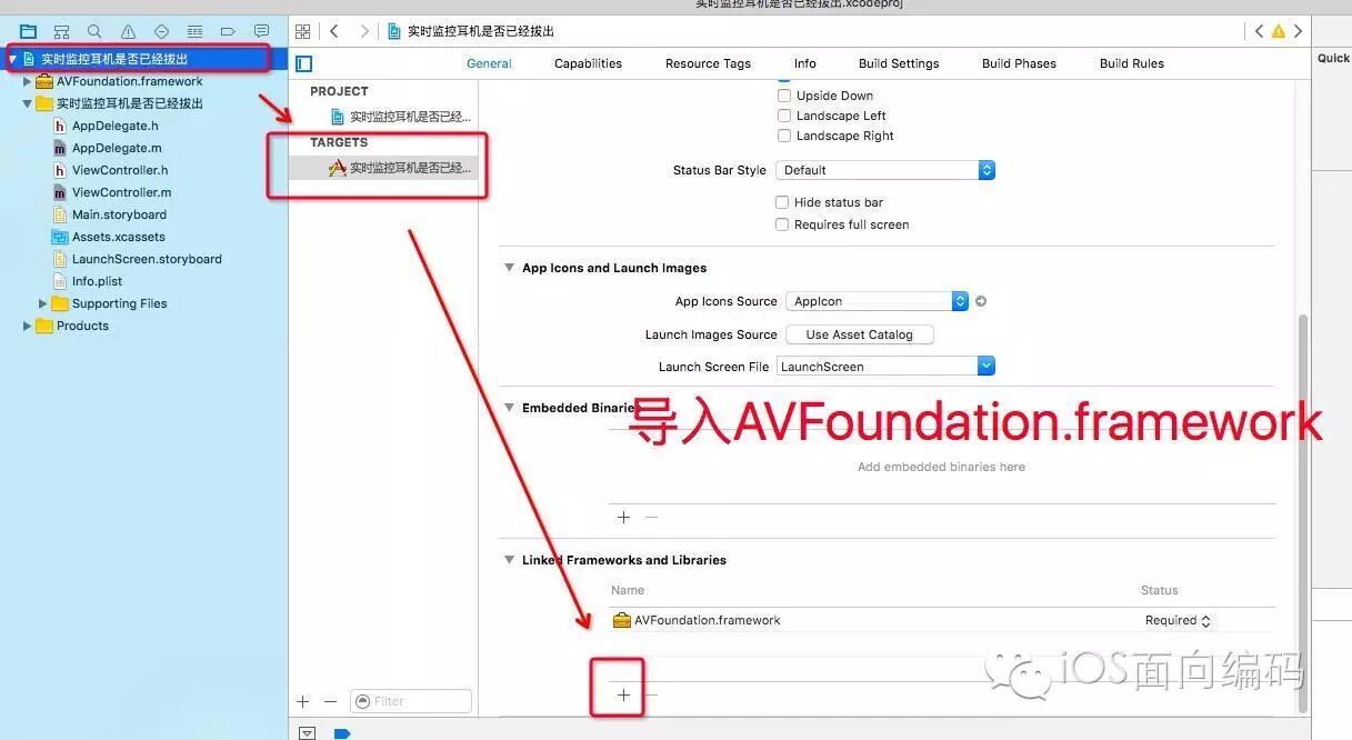 首先,我们需要导入AVFoundation.framework这个框架如下图.