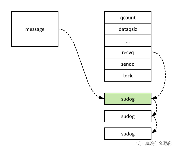sudog 是一个运行时的结构体的,它的主要作用就是表示一个在等待列表中的 Goroutine,其中存储着关于这一次阻塞的信息以及两个分别指向前后的 sudog 指针。