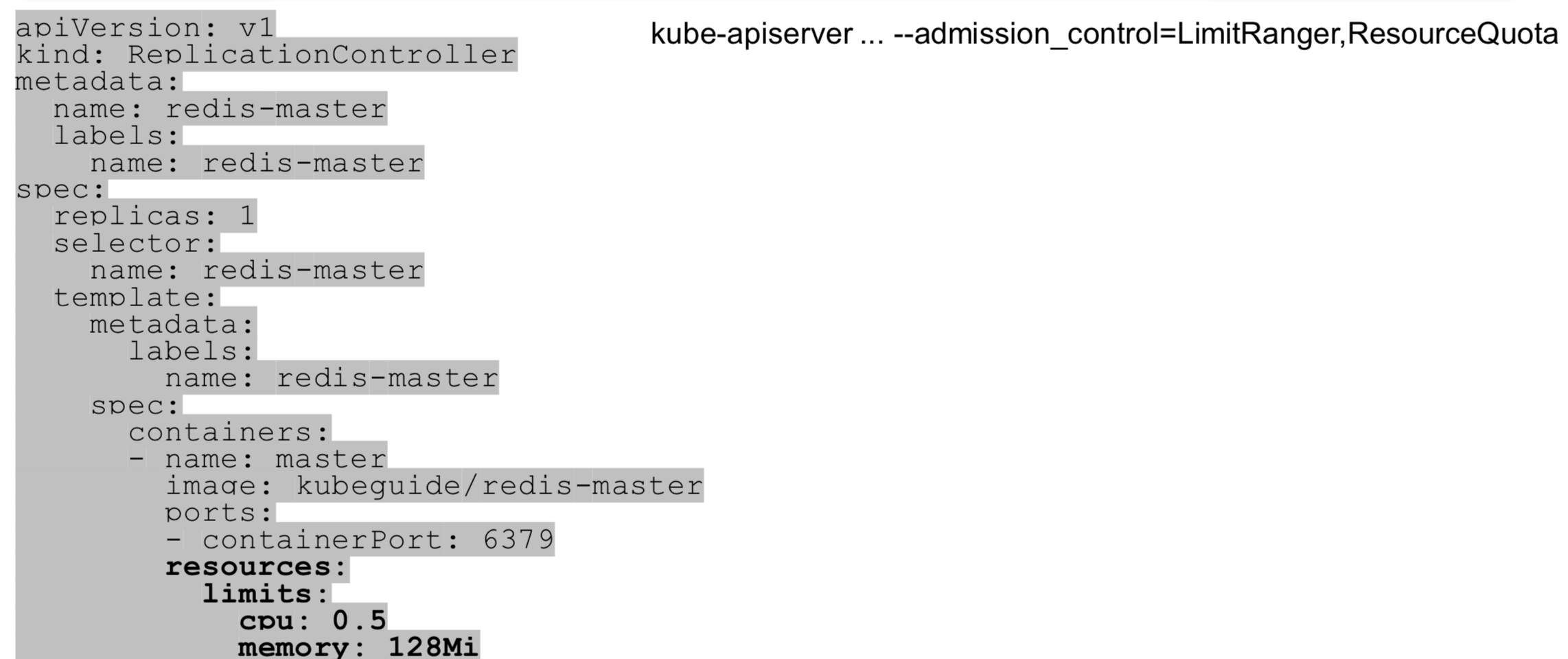 如果用到资源配额,需要增加插件 如上图右上角的命令LimitRanger,ResourceQuota