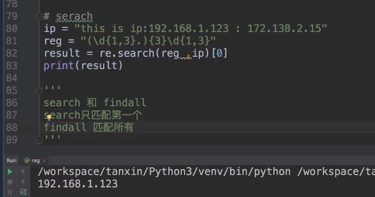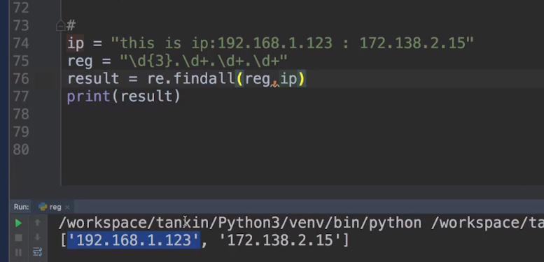 我们的ip字符串是这样子的:ip = "this is ip:192.168.1.123 :172.138.2.15"