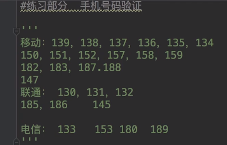 这样我们就可以在开头做事情了,先判断开头是不是上面的号段, regex = "^((13[0-9])|(14[5|7])|(15([0-3]|[5-9]))|(18[0,5-9]))\d{8}$",就是我们的元字符,代码如下: