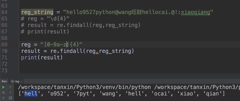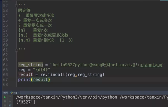 >>> reg_string = "hello9527python@wangcai.@!:xiaoqiang"