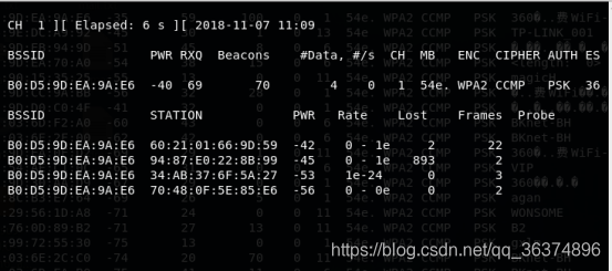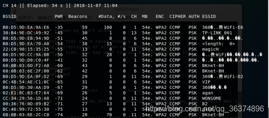 airodump-ng --bssid B0:D5:9D:EA:9A:E6 -c 1 -w /root/360wifi wlan0mon //抓数据包