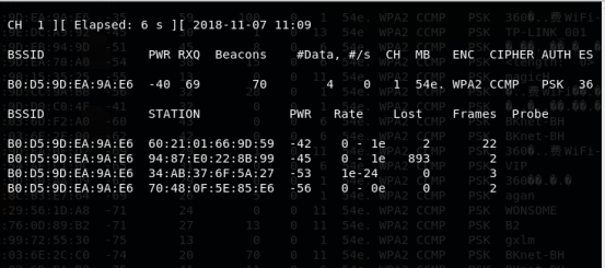 # airodump-ng --bssid B0:D5:9D:EA:9A:E6 -c 1 -w /root/360wifi wlan0mon