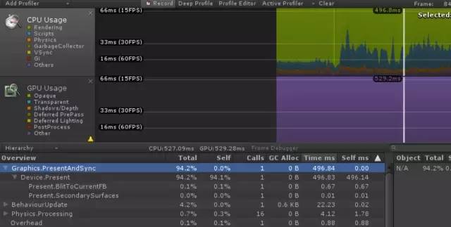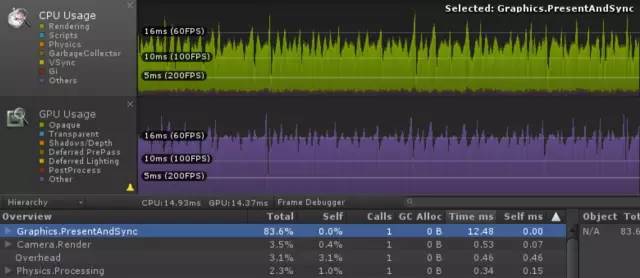 最后,如何优化并降低这两个参数的CPU占用呢? 那就是,忽略Gfx.WaitForPresent 和 Graphics.PresentAndSync这两个参数,优化其他你能优化的一切!