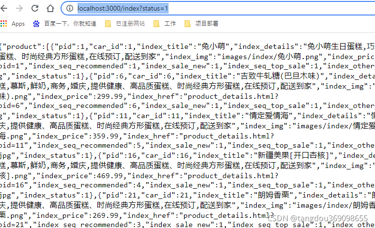 场景:当前我启动了 本地的node.js项目,然后开启了3000端口,本地访问自己的接口是这个样子