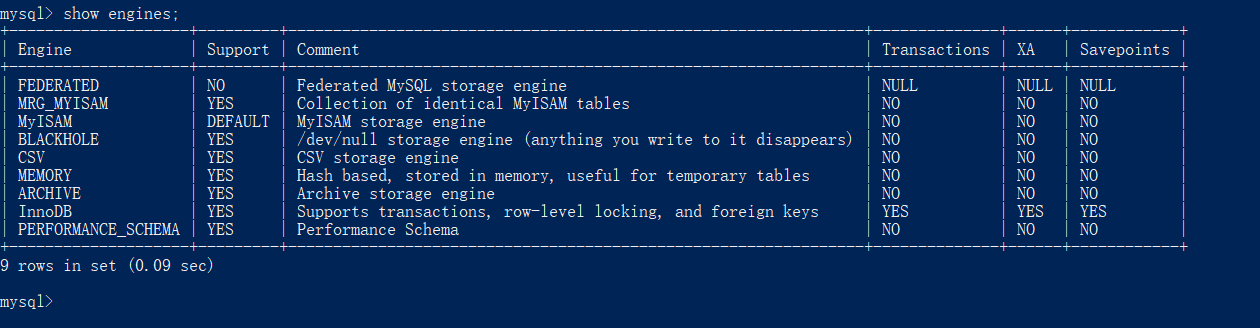 | 支持外键 | 不支持 | 不支持 | 支持 | 不支持 |