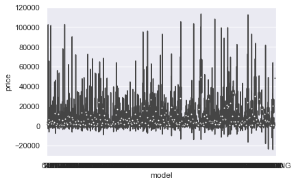 可以看到预测结果:最小值为负值,价格应该为证,导致这个情况就是一些异常值存在,应该剔除。