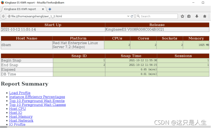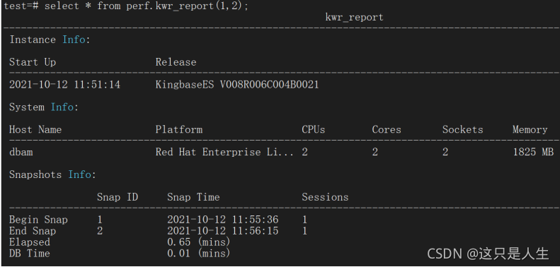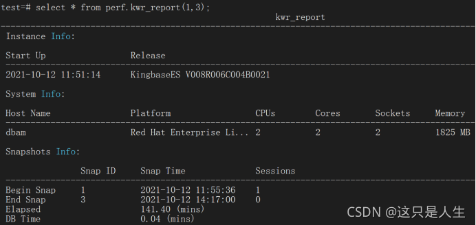偶然之间,发现人大金仓的 Kingbase ES 也提供了一个类似的功能,叫 KWR 报告,深感意外。下面我们就来一起来探索一下吧。