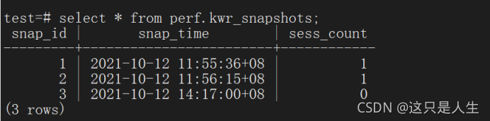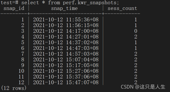快照的查询通过 perf.kwr_snapshots 即可: