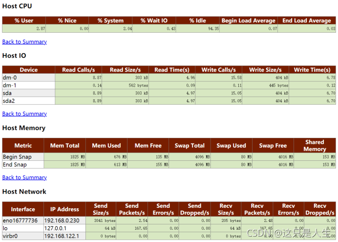 有过 DBA 经验的人都知道,有多少的问题是应该客户主机和网络环境问题引起的,尤其是在一些保密性强的环境里,很多的服务器上无法安装 NMON 之类的性能监控工具,这时候,能有一份不依赖任何外部工具就能生产的 CPU、IO、内存和网络统计报告是多么的激动。