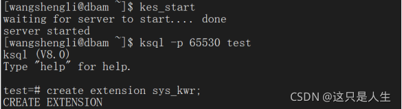 启动 KES 数据库,ksql 连接进去,创建 sys_kwr 插件: