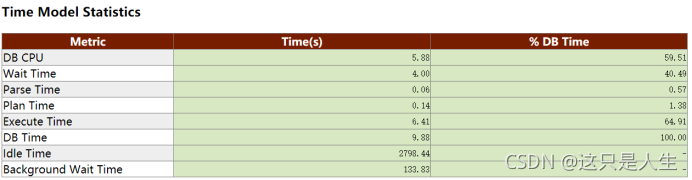 可以从详细报告的 Time Model Statistics 里看 DB time 的各组成部分: