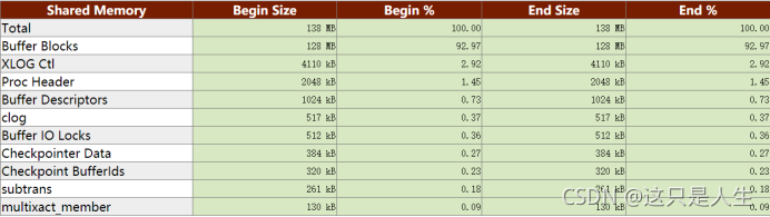 Top 10 Shared memory 报告则展示了数据库实例共享内存的一个分部情况,能够很清晰的知道哪些业务占了共享内存的大部分空间。
