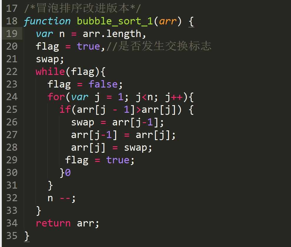设置一个标志,如果这一趟发生了交换,则为true。否则为false。如果这一趟没有发生交换,则说明排序已经完成。代码如下: