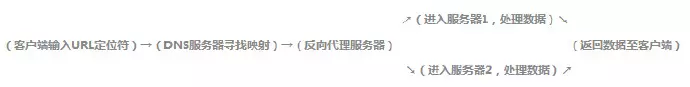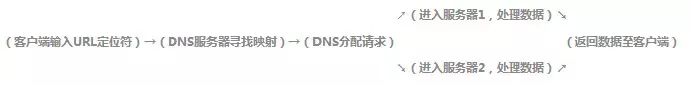 (客户端输入URL定位符)→(DNS服务器寻找映射)→(进入服务器,处理数据)→(返回数据至客户端)