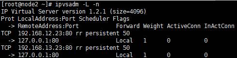 由此可见,一个主节点挂掉以后所有的VIP和ipvs规则都会转移到另一个节点,所以访问也不会受到任何影响,这里就不再测试。如果故障节点重新上线,资源还会再次回到工作节点。