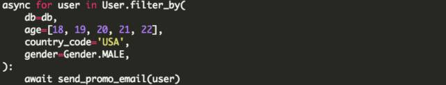你也会找到很多你期望在传统的ORM中有的功能。下面是如何向一个满足属性:{US, college-age, male}的用户发一个推送的过程: