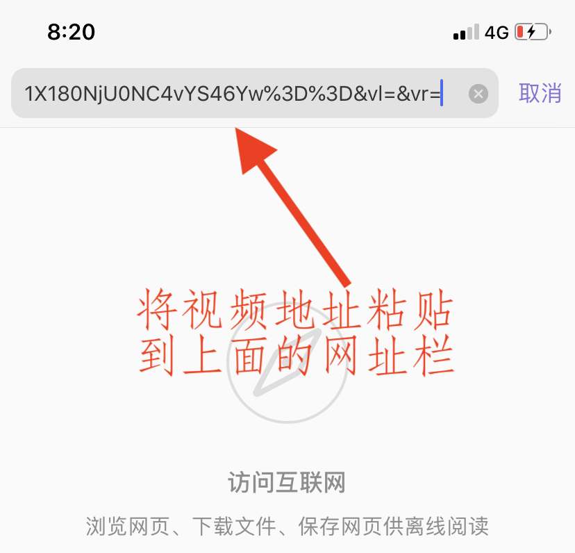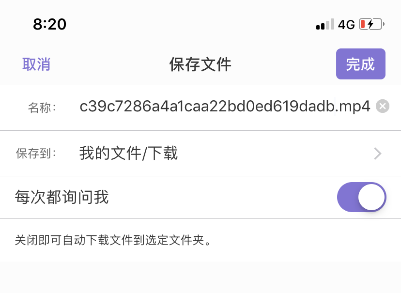 三、点击小程序的<复制视频地址>按钮,这是去水印后的mp4视频下载地址。打开Documents APP,点右下角浏览器按钮,打开Documents APP的内置浏览器,将刚才复制的视频地址粘贴到浏览器的网址栏,然后确定。这时候,会自动弹出保存文件的提示,直接点完成按钮即可。