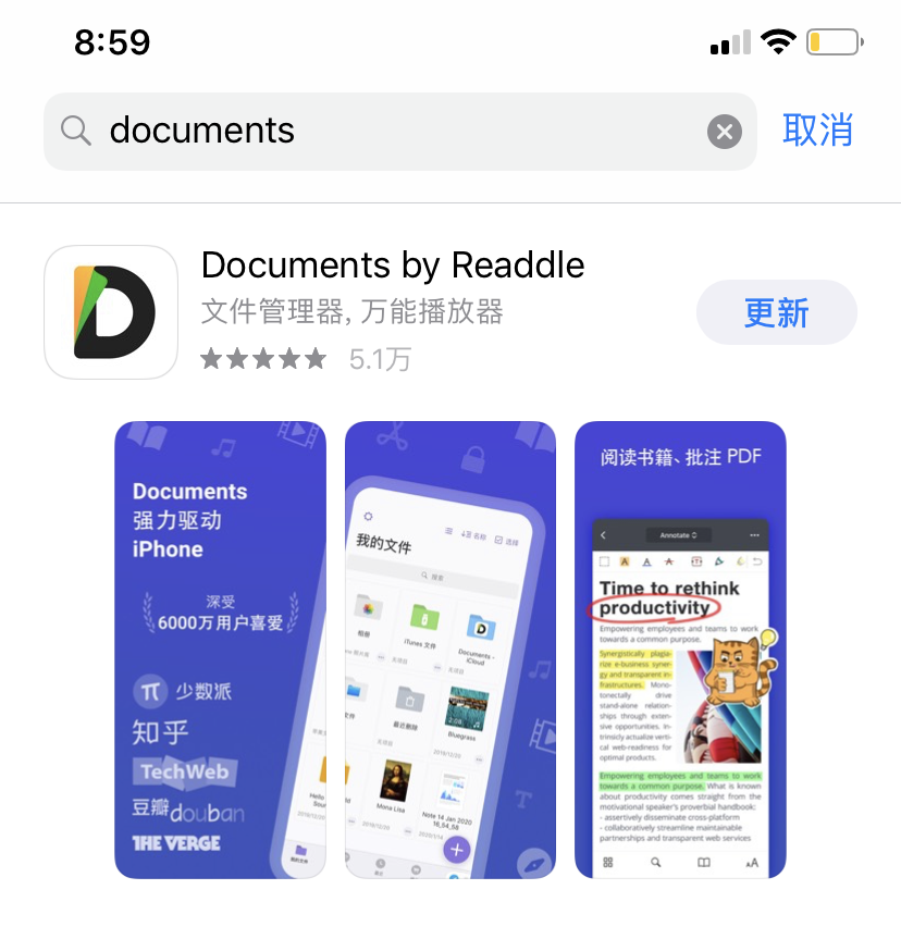 二、如果你还没有安装Documents APP,先去App Store下载安装。(注意:安卓用户可以直接用常见的QQ浏览器、360浏览器等)