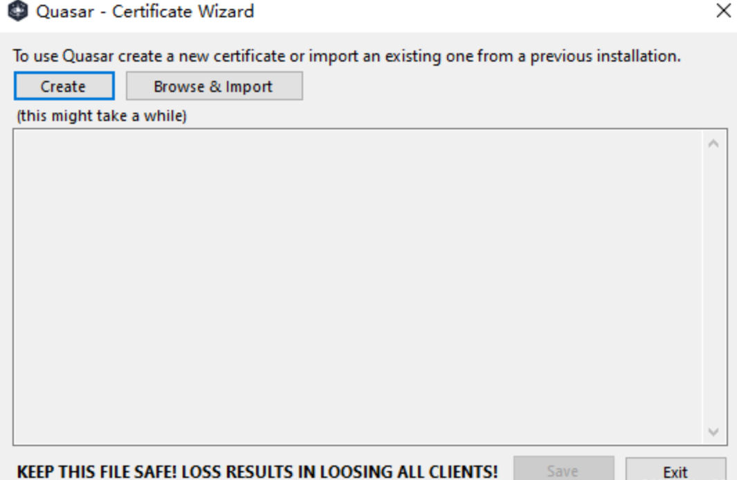 点Create,然后会卡好一会,这是在生成秘钥,可能会未响应,等它出现文字即可: