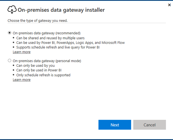 Power BI 数据网关的两种安装模式:标准模式和 个人模式
